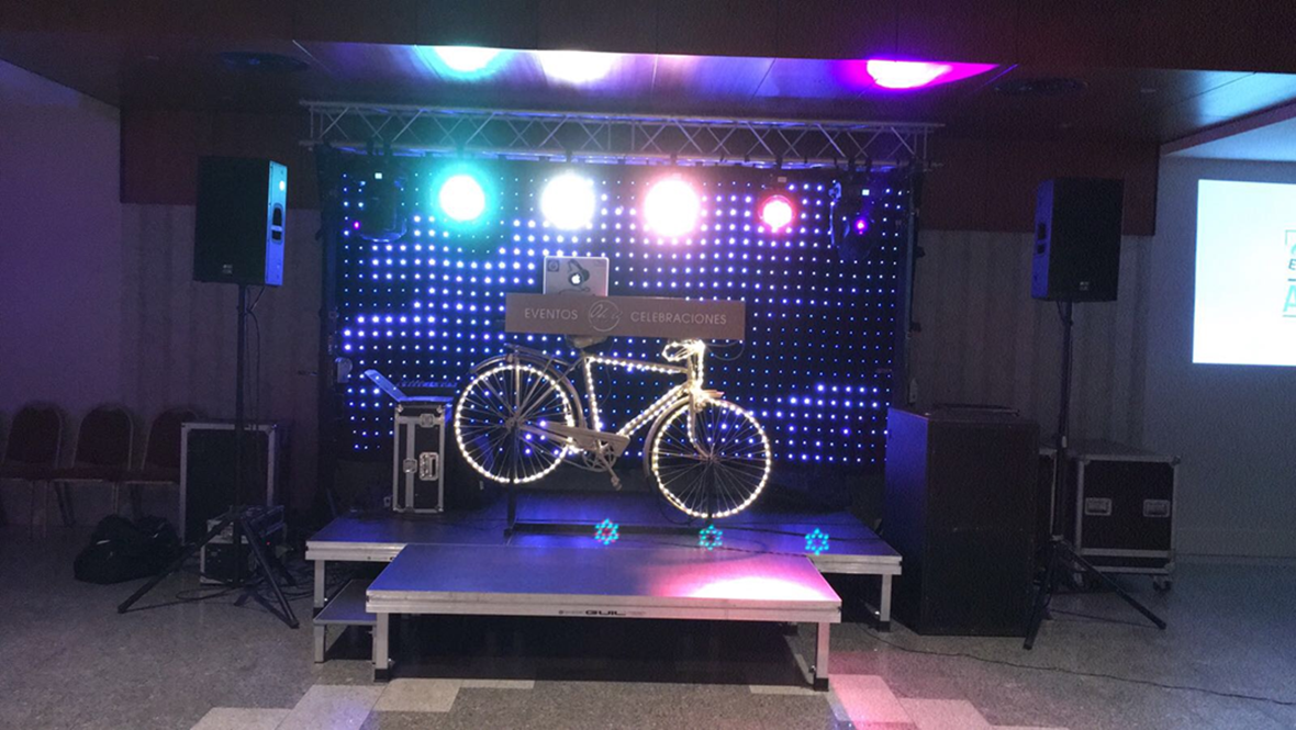- Escenario Bicicleta Vintage con Luces y Pantalla de Led RGB 4 x 3 metros.